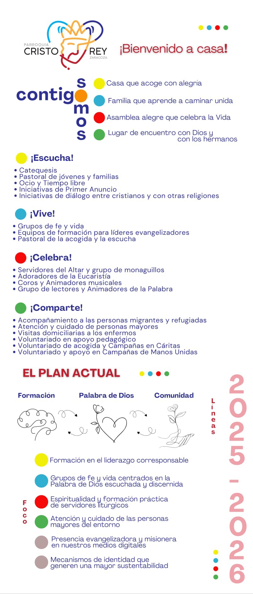 En sintonía con EL PLAN «VITA», propuesto por nuestra Archidiócesis, nuestra parroquia renueva su compromiso de ser, en el barrio de Las Fuentes y en la ciudad de Zaragoza, CASA QUE ACOGE y LUGAR DE ENCUENTRO.